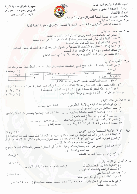 حمل الان اسئلة الامتحانات التمهيدية لجميع مواد الصف السادس الاعدادي الفرع العلمي - تطبيقي لعام 2017